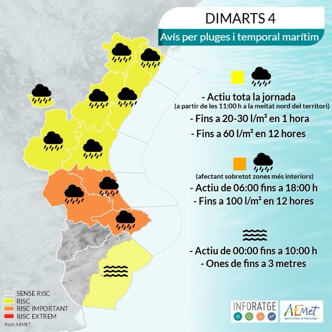 Es recorda la importància de reduir la velocitat en cas de pluja o carrers banyats i d’evitar desplaçaments innecessaris. Els telèfons de la Policia Local (962019009) i Emergències (112) han d’usar-se només en cas necessari.
