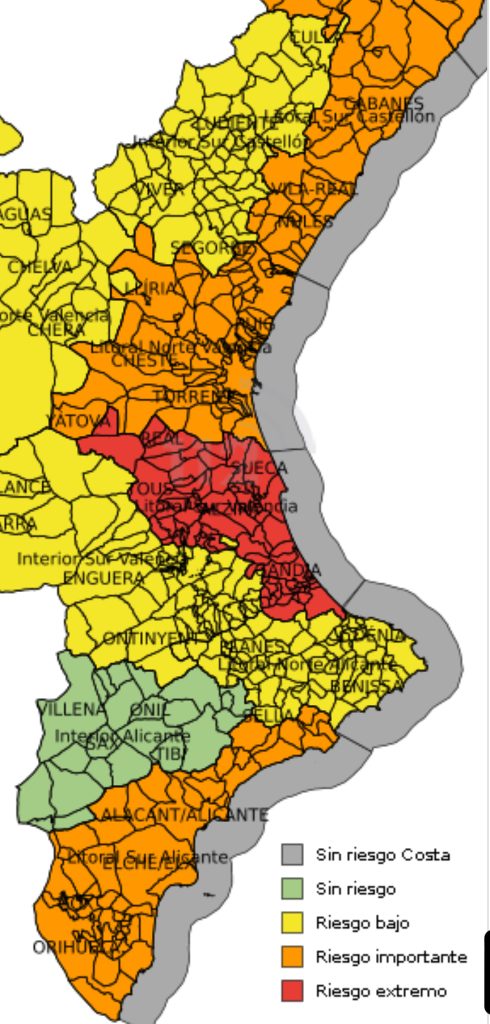 El servei de preemergència de la Generalitat Valenciana ha decretat Avís Roig per fortes pluges.