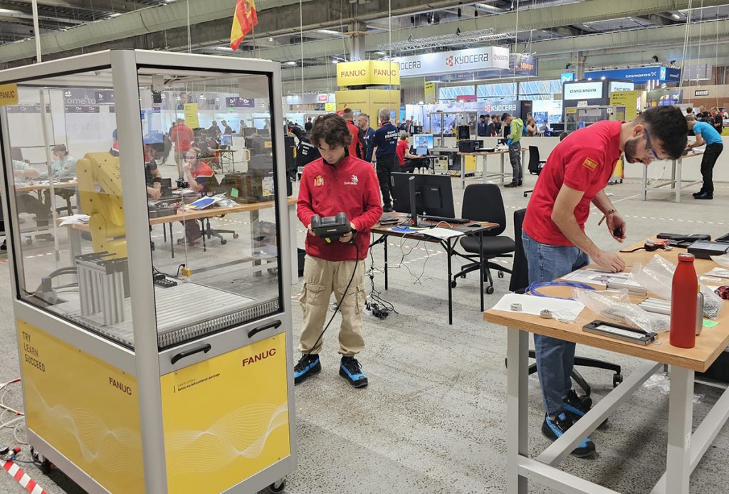 Jose Doria i Borja Pérez, formats a l’IES Bernat Guinovart d’Algemesí, competixen en la modalitat de Robot Systems Integration, una disciplina que requerix coneixements avançats en integració de sistemes robòtics, automatització industrial, pneumàtica, hidràulica i programació. Tots dos treballen actualment en empreses del sector com Agra i Proemisa.