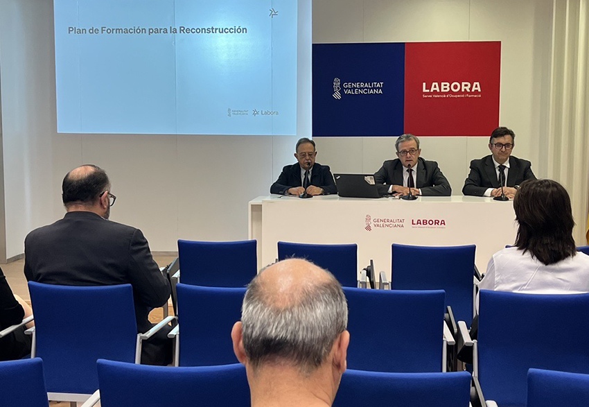 Labora, el Servei Valencià d’Ocupació i Formació, ha presentat un pla de formació per a la reconstrucció de la zona afectada per la riuada. L’acte ha comptat amb la participació del secretari autonòmic d’Ocupació, Antonio Galvañ, el president de la Fundació Laboral de la Construcció, Francisco Zamora, i el president de Femeval, Vicente Lafuente.